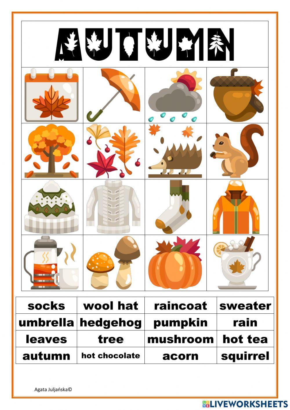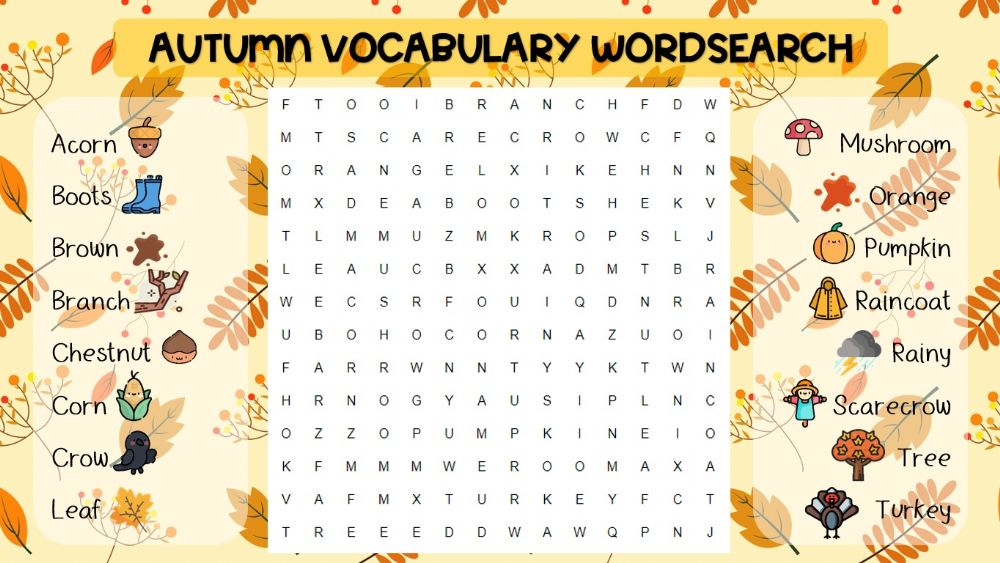 Autumn vocabulary wordsearch